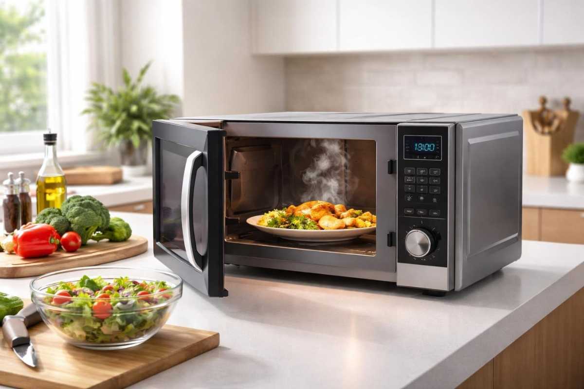 Com mais espaço, fica simples usar funções como preparo de duas refeições ao mesmo tempo ou a grelha interna. Modelos com prato giratório maior e revestimento antiaderente ajudam a evitar respingos e facilitam a limpeza.